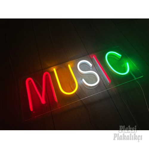 MUSIC Yazılı Dekoratif Neon Led Tablo, Neon Duvar Tabela